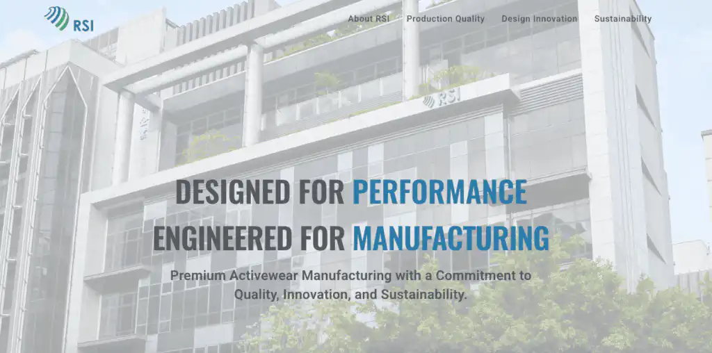 RSI Apparel is a global player in custom fitness apparel manufacturing, offering full-service solutions from design to production. They specialize in creating high-performance activewear with an emphasis on quality and durability.