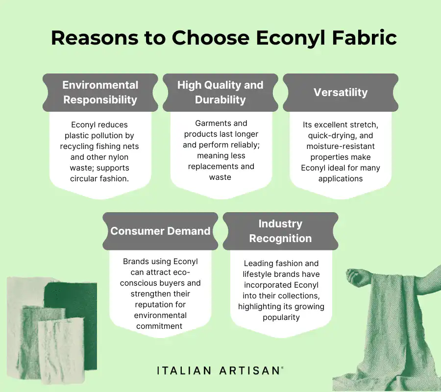 More customers seek sustainable options. Brands using Econyl can attract eco-conscious buyers and strengthen their reputation for environmental commitment.